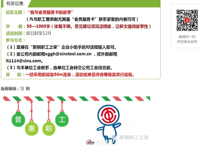 日前,新鋼職工之家 舉辦“我與會員服務(wù)卡的故事”征文活動。該工會職工普惠項目中的“美容美發(fā)項目組”組長陳女士參與了活動,如實講述了她真實的裝修過程。